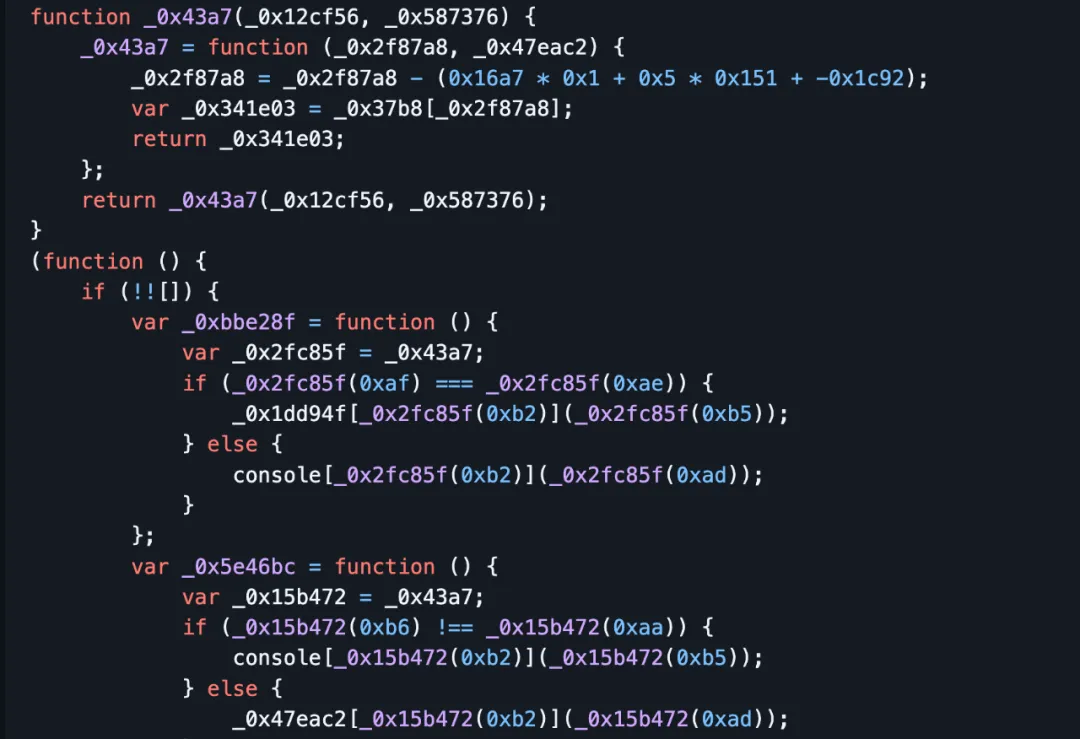 _0x1a2b),增加代码反向工程的难度。这对包含业务逻辑的脚本尤为重要。 - 字符串提取与加密:将所有字符串字面量提取到一个加密数组中,通过索引访问。这样即使反编译,攻击者也看不到原始的 API 端点、密钥等敏感信息。