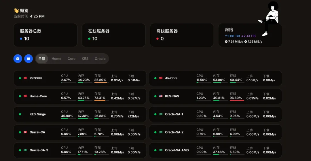 - 个人开发者:管理自己的 VPS、NAS、树莓派等设备,所有状态一目了然