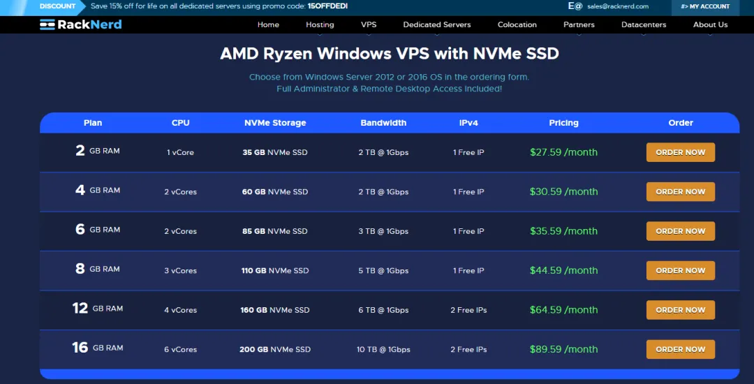 - RackNerd:自主管理,系统安装、驱动、优化都需要自己折腾(部分计划可能需要自备或自行激活 Windows)