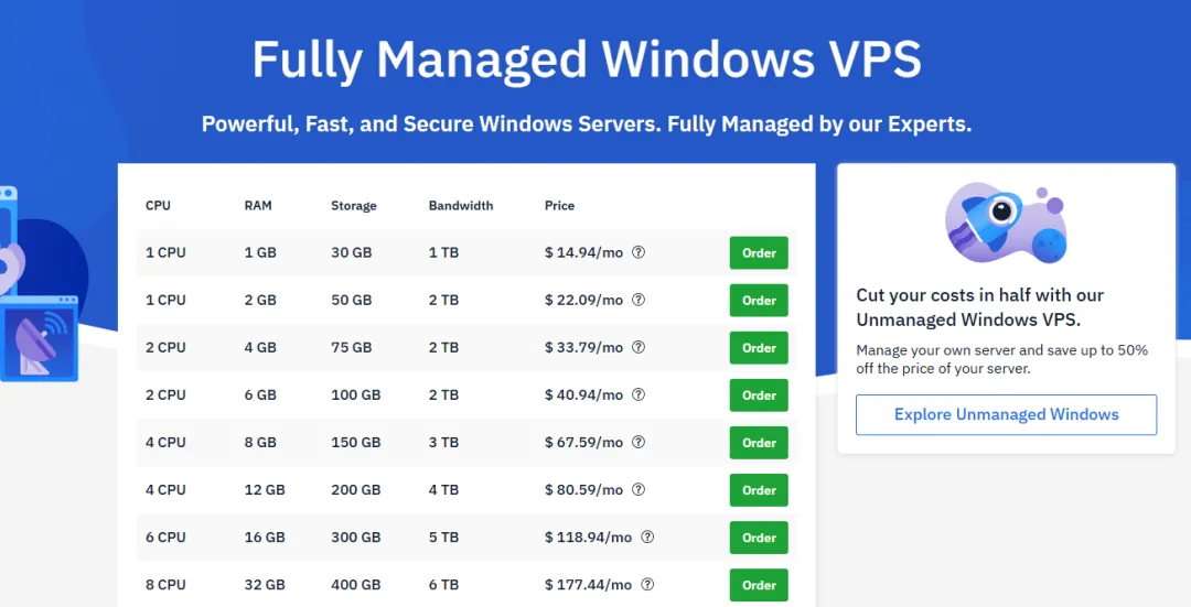- 提供全托管 Windows VPS,系统、监控、备份更省心