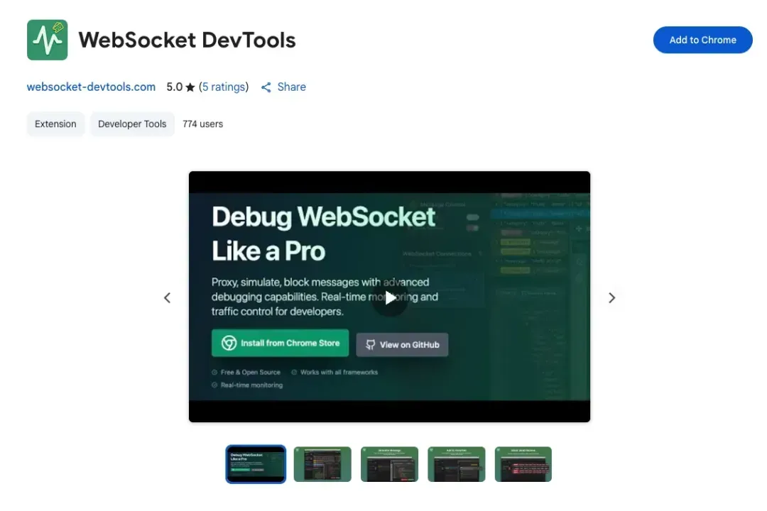 快去 Chrome 商店搜索“WebSocket DevTools”,装上它,解除调试盲区,拥抱便利吧!