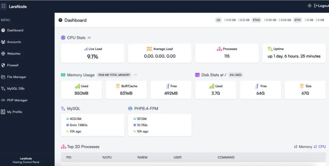 未经允许不得转载:Laranode:又一款免费轻量的服务器面板,还是宝塔平替?