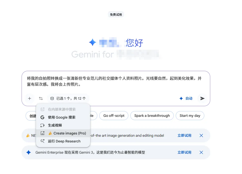 谷歌又来给大家发送福利了,可以免费白嫖一个月的商业会员,可以使用Gemini 3和Banana Pro,完全正规,不用绑卡,直接开通,不用担心被扣费。