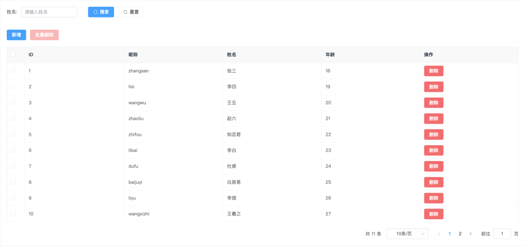 - 1.接收参数:列表 api、删除 api、查询参数、分页参数