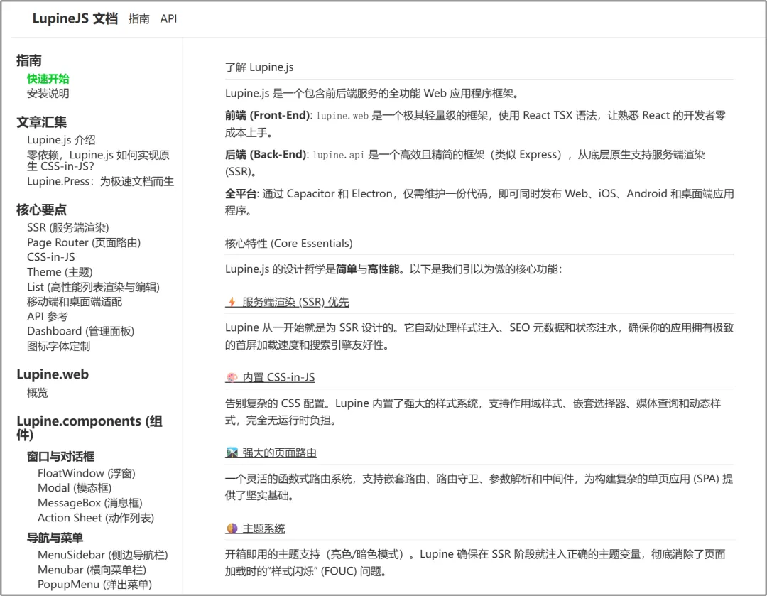 这种"框架内聚"的设计理念,让我想起了那些成熟的全栈框架,但 Lupine 的野心更大——它要把前后端的路由、数据流、甚至思维方式都统一起来。