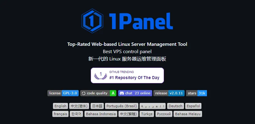 今天,我要分享给大家的是一个令人瞩目的开源项目:1Panel。