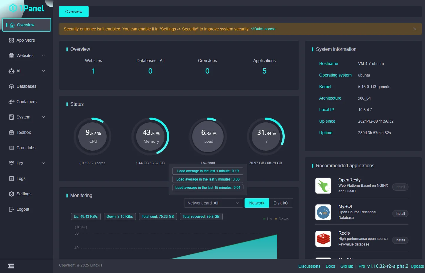 无论是用作公司内部服务器管理,还是支撑个人项目的部署,1Panel都是一个极佳的选择。强烈推荐给每一位开发者,赶快上手体验一下吧!